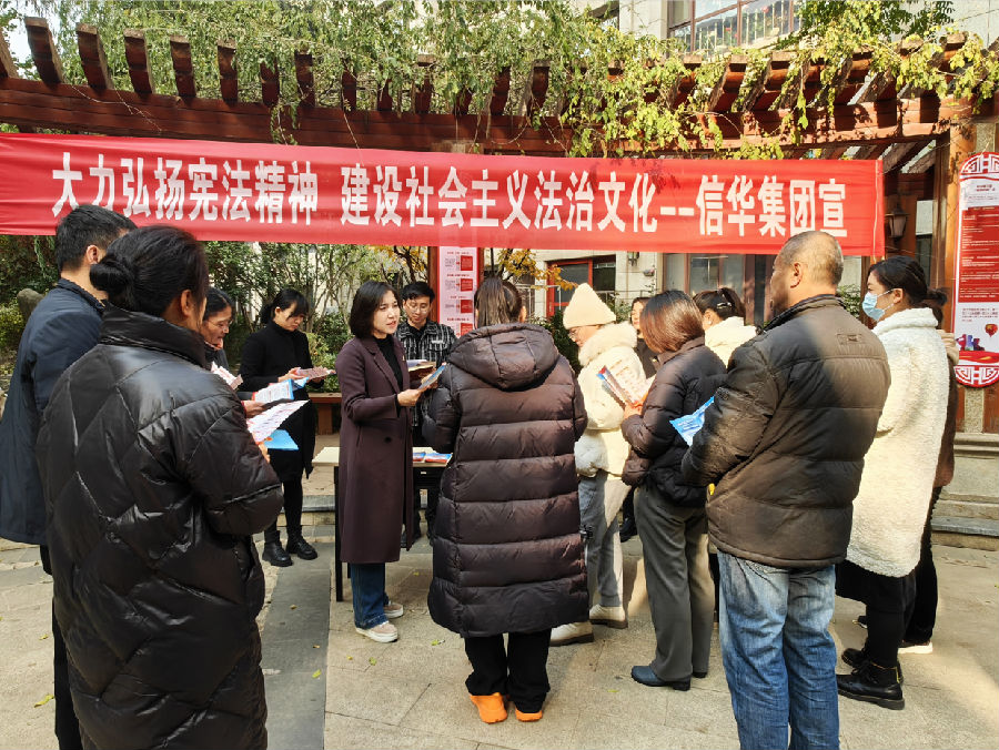 活动现场,集团副总经理朱颖带领宣传组人员在和家园法治广场通过悬挂宣传横幅、发放宣传资料、提供现场咨询等形式,向群众大力宣传宪法相关知识,解答有关宪法问题,让宪法意识深入人心,让宪法知识家喻户晓。