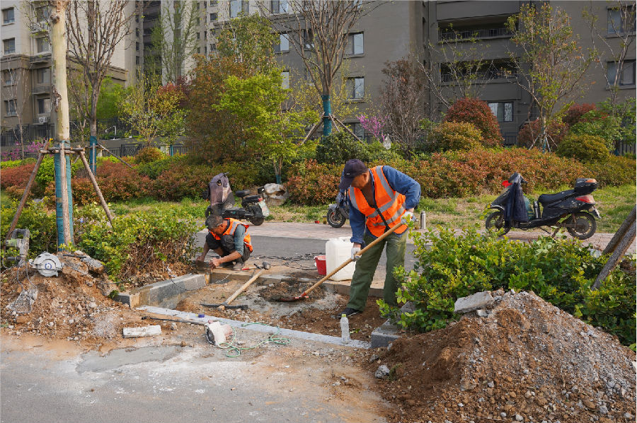 截至目前,荆河东路(吉山路至龙泉路端)已基本完成路口坡道、行进盲道、提示盲点等位置的拆除切剖和盲道砖的铺贴工作,同时龙泉路(荆河东路至通盛路段)东侧热融盲道的施划工作现已基本结束。