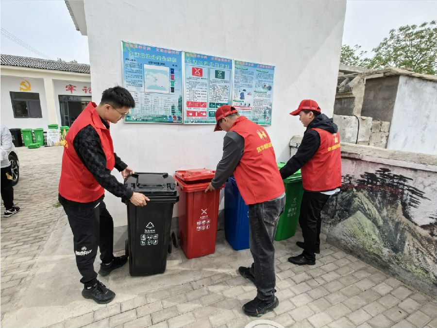活动中,志愿者在村内设置垃圾分类站点,安放崭新的分类垃圾箱,对村广场和主干道垃圾、杂草进行清理,并在道路两旁绿植中安设垃圾分类、环境保护宣传牌。随后,志愿者们走进村民群众家中,向村民普及讲解垃圾分类和环境保护常识。本次活动共向村委会捐赠分类垃圾箱两套、垃圾箱八个、环保宣传牌十余个。