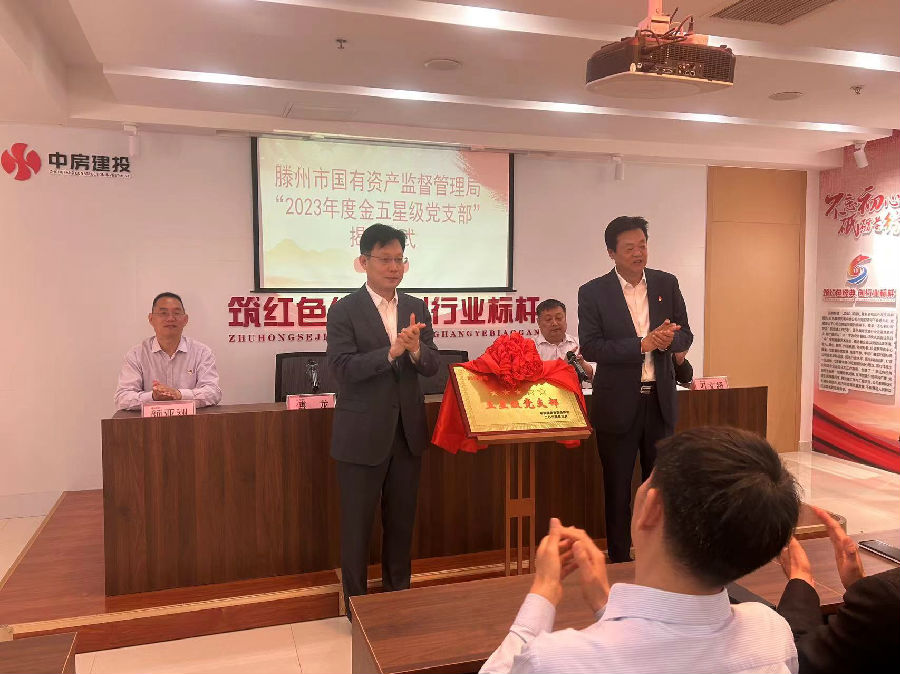 活动中,与会领导听取了中房建投公司支部党建工作情况汇报,高聘国同志宣读了《关于命名滕州市“2023年度金五星级党支部”的决定》,魏锋局长、傅龙董事长共同为“金五星级党支部”进行了揭牌。